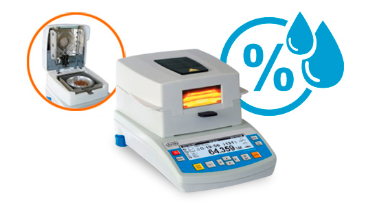 La balanza de humedad es un instrumento que determina fácilmente y en tiempo real el tenor de humedad de una muestra de queso, leche en polvo, etc.