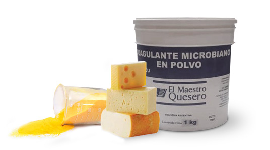El coagulante en polvo EL MAESTRO QUESERO es un concentrado de enzimas coagulantes de alta calidad producidas por fermentación, se presenta físicamente como un polvo granulado para su mejor disolución en la leche y es preferido en algunas elaboraciones tradicionales o en plantas donde la elaboración es circunstancial y el producto debe conservarse en el tiempo; también se lo prefiere para envíos aéreos o para su comercialización en lugares apartados. Bien conservado, en lugar fresco y oscuro, el coagulante en polvo EL MAESTRO QUESERO mantiene su actividad por largo tiempo.