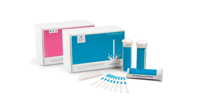 UNISENSOR ofrece test para detectar la presencia de antibióticos pertenecientes a una sola familia, (SULFONAMINAS, TYLOSINA, QUNOLONAS, CLORANFENICOL, ETC, o kits múltiples para detectar hasta 4 familias simultáneamente.